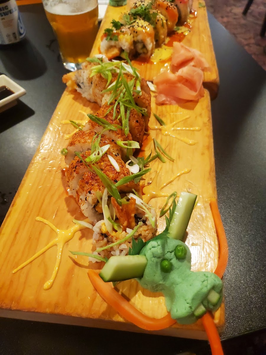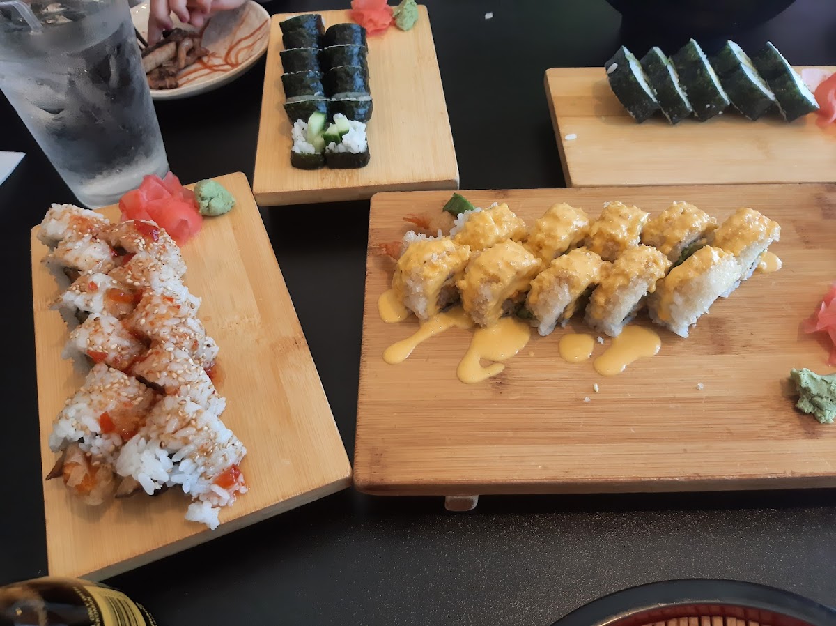 Every sushi roll was scrumptious! All had their own taste and texture, so good Our waiter was so nice, hospitable, knowledgeable on the types of sushi and made the best recommendations. We had the Sweet n Crunchy (yellow sauce), the Warrior Roll (green onion on top), the Crunchy Shrimp (orange fish eggs on top) and a Spicy Dragon (red dot on top). Definitely a return visit in our future!